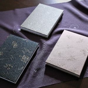 雪月花~花様年華~。ノスタルジックを感じる歴史ある表具裂地の生地・文様を活かした数寄屋袋・ご朱印帖・ご朱印バンドの和小物ブランドです。表具裂地とは掛軸・屏風・和額などに使われるシルク素材で出来た生地。主役を際立てさせるためにさりげない装飾がされている上品でシックな雰囲気を持つ名脇役の存在です。その名脇役は普段着であっても着物姿であっても邪魔にならず、さりげなく粋さを演出したい女性たちへの贈りモノとしてハンドメイドされた一点モノたちです。